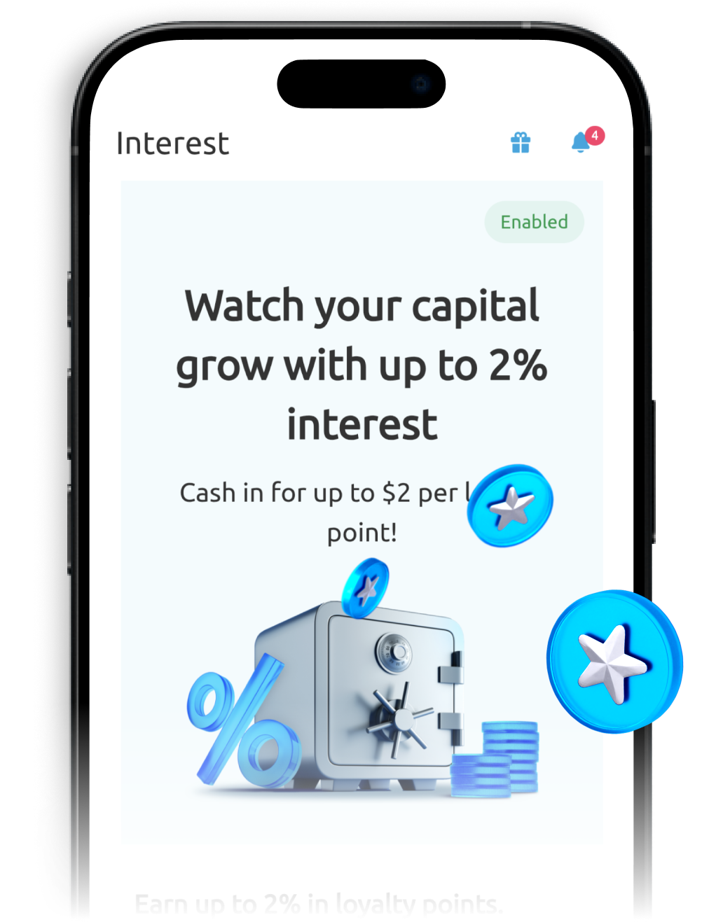 اكسب دخل إضافي مع عائد يصل إلى 2% على رأس المال المستثمر، يُضاف يوميًا ويُدفع شهريًا.على شكل نقاط ولاء.